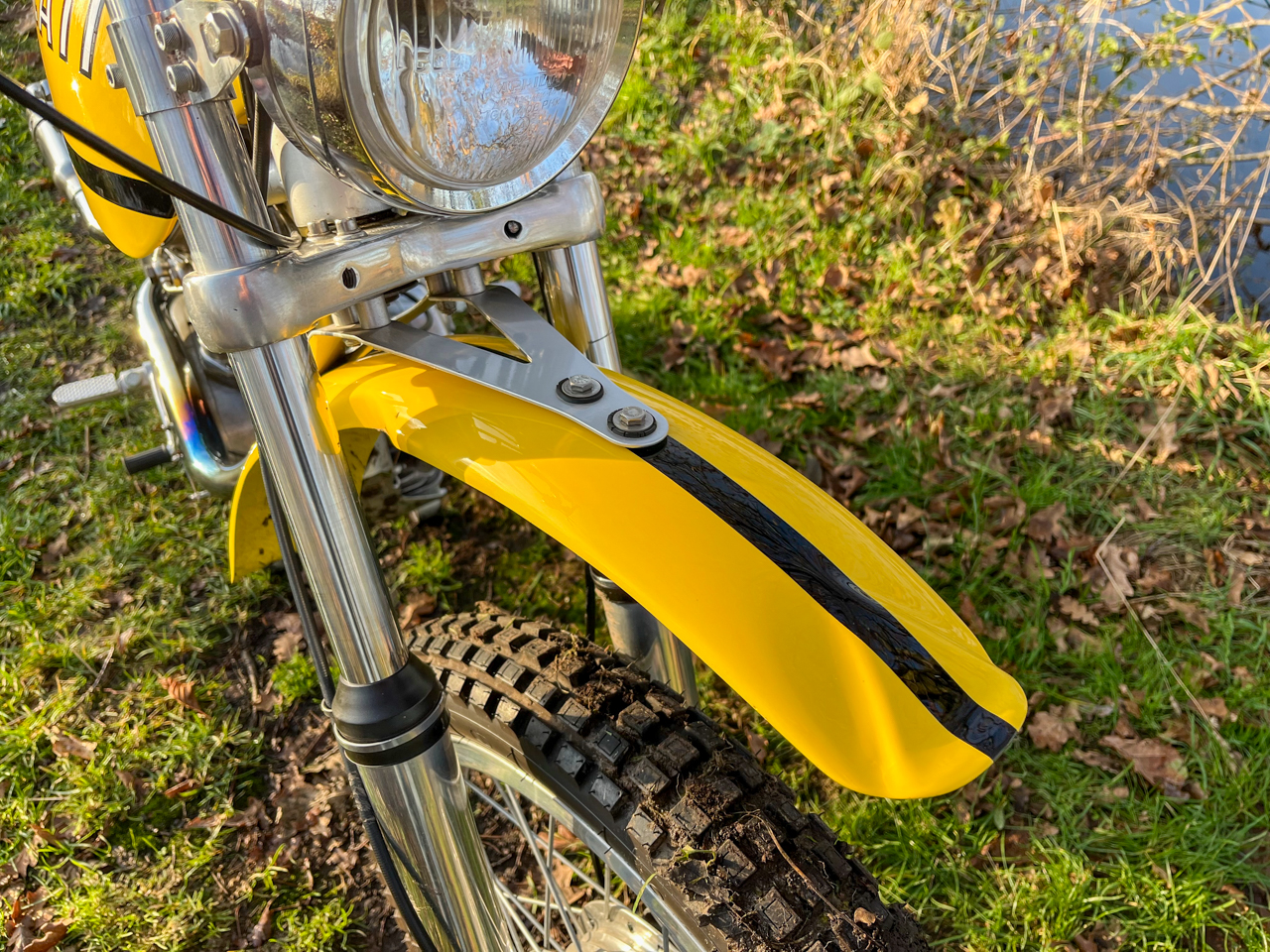 The Ducati 350 R/T was produced for only a short period in the early 1970s, making it one of Ducati’s rarest models. Designed as a versatile on- and off-road bike, it represented a bold step for Ducati into the dirt bike scene, marrying their hallmark performance and engineering with rugged, adventure-ready capabilities. Built for racing yet adaptable to everyday use, the 350 R/T is a testament to Ducati’s innovation and ambition during this era.