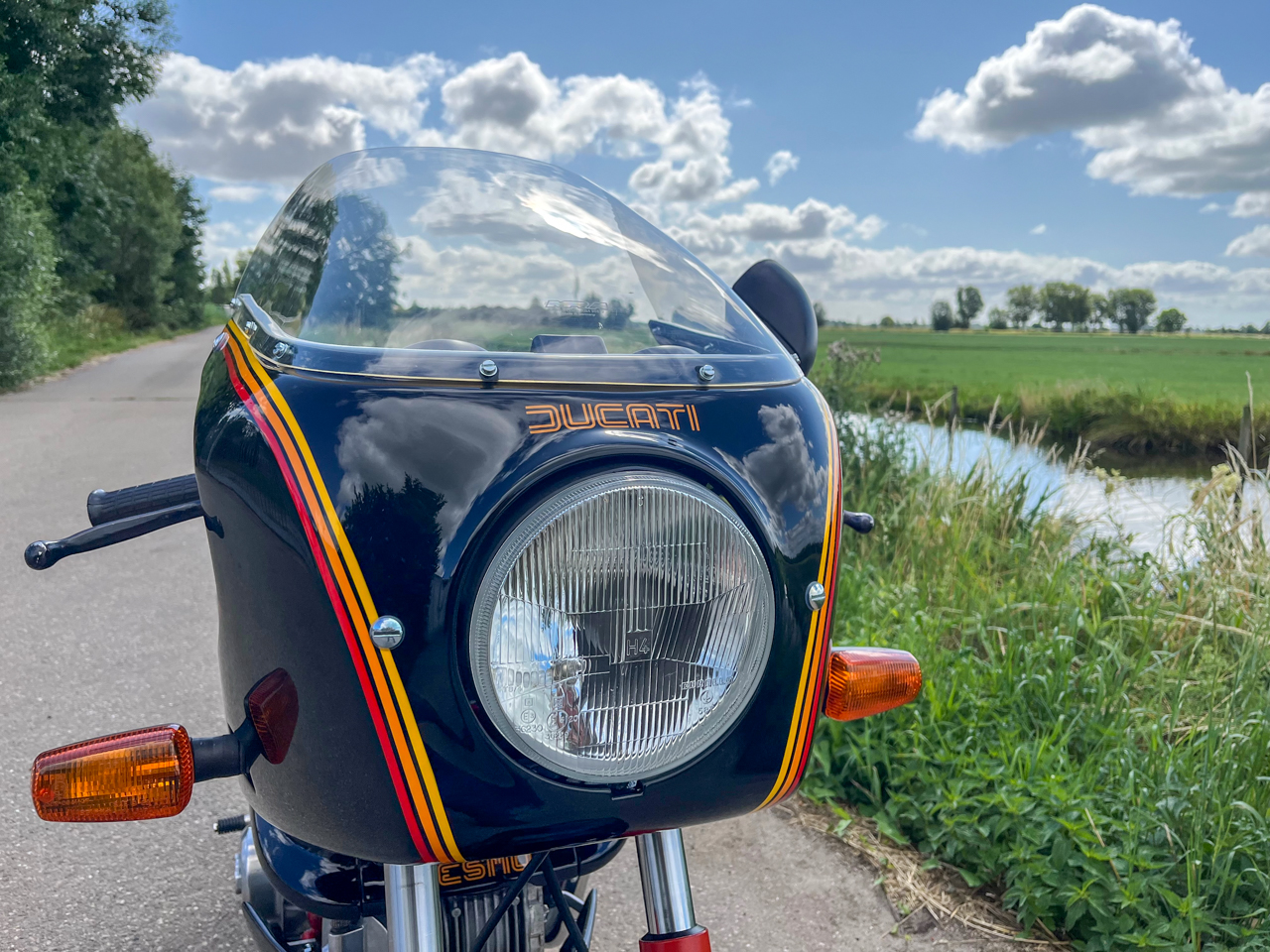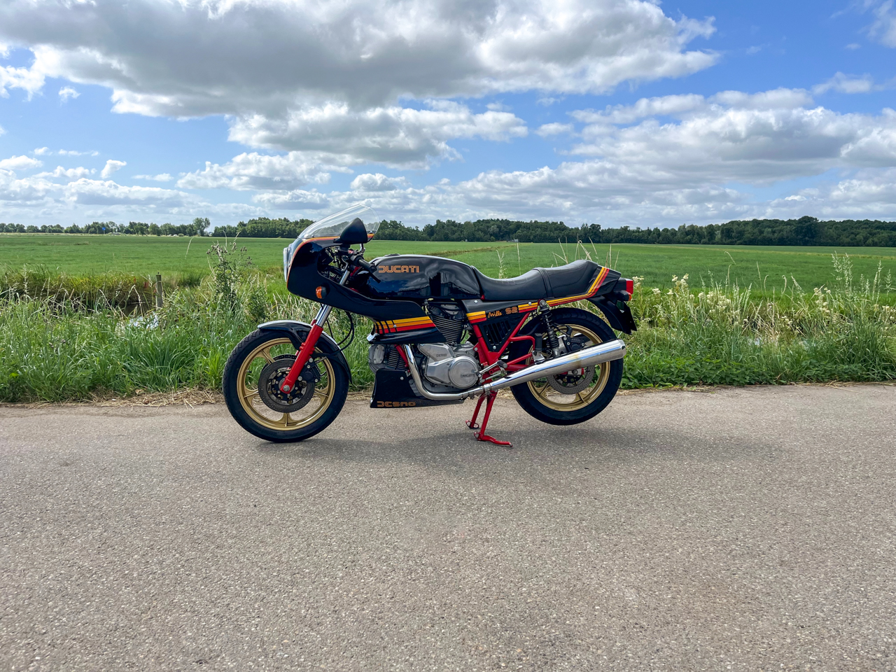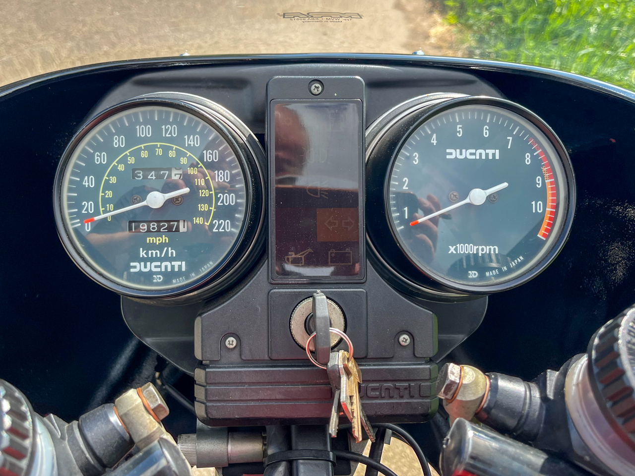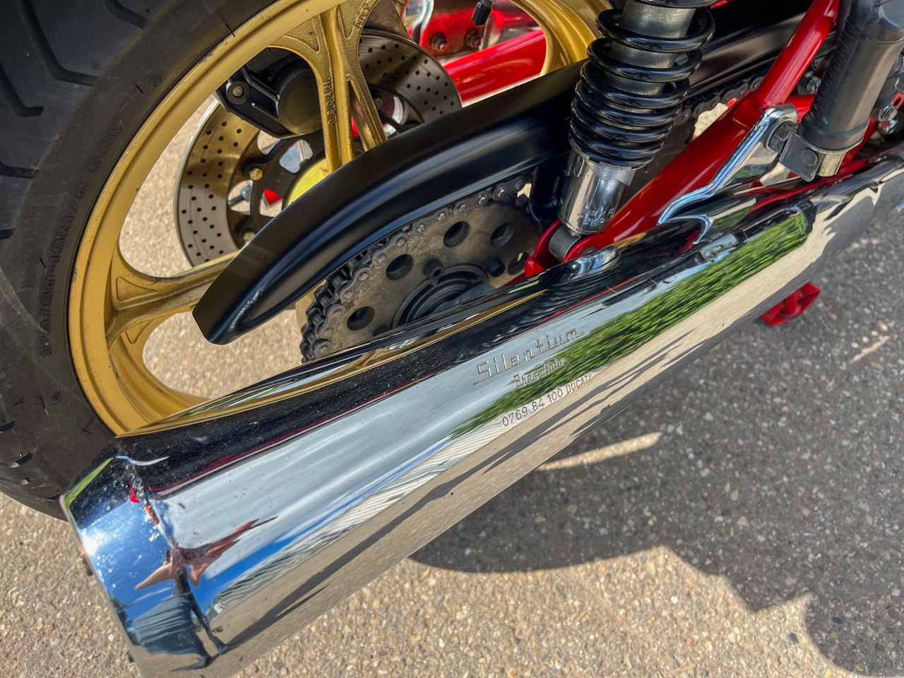 The bike has just undergone a full recent service in our workshop and is running beautifully. From idle to redline, the 973cc L-twin delivers the kind of raw, mechanical riding experience that only a classic Ducati bevel-drive can offer.