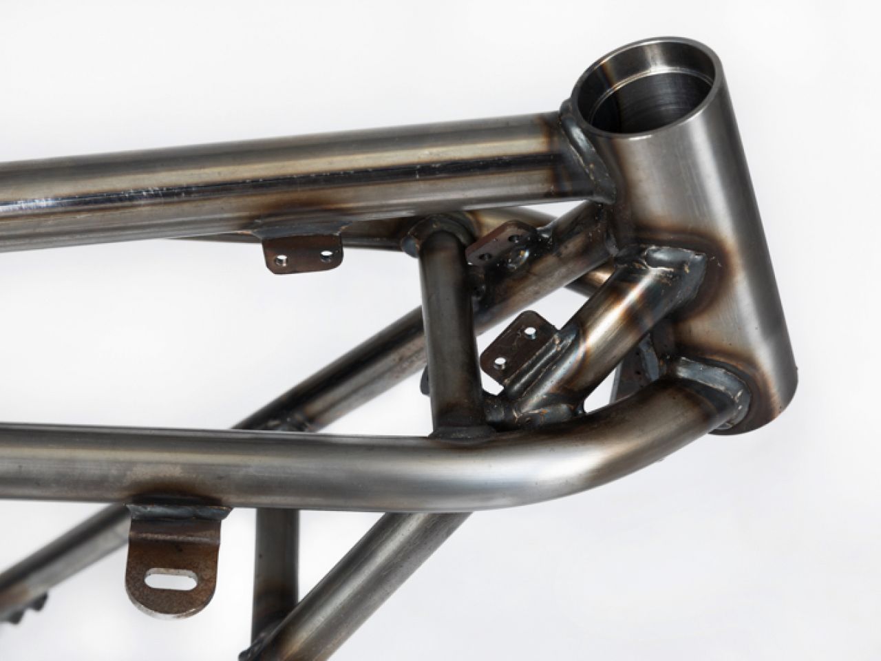 Further down the line we will also be offering Daspa racing frames in chrome-molybdenum (25CrMo4) tubing that will be TiG welded. We have already exclusively built such a frame to very special (short-stroke) specifications and we like to share some pictures of the details: