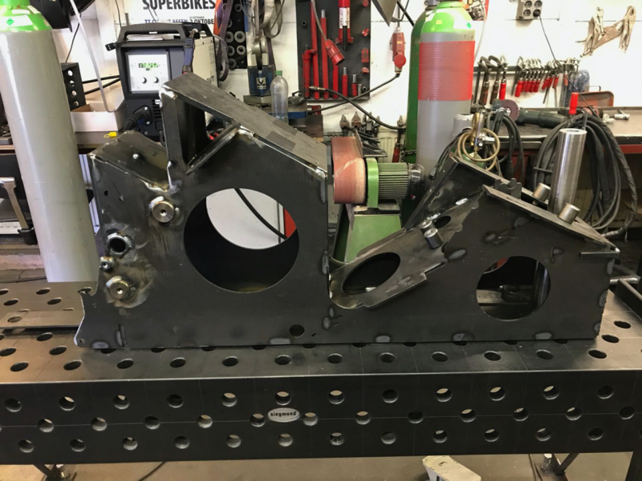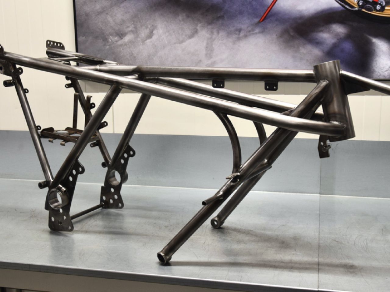 The jig, along with a range of additional tooling, is used in-house to build the actual frames. To remain as close to the original as possible, we chose to make the frames in E235 tubing and to MiG weld the complete frame. As an optional extra, we also offer the possibility to have a frame made in thin-walled chrome-molybdenum tubing that will be TiG welded, but more about that later.