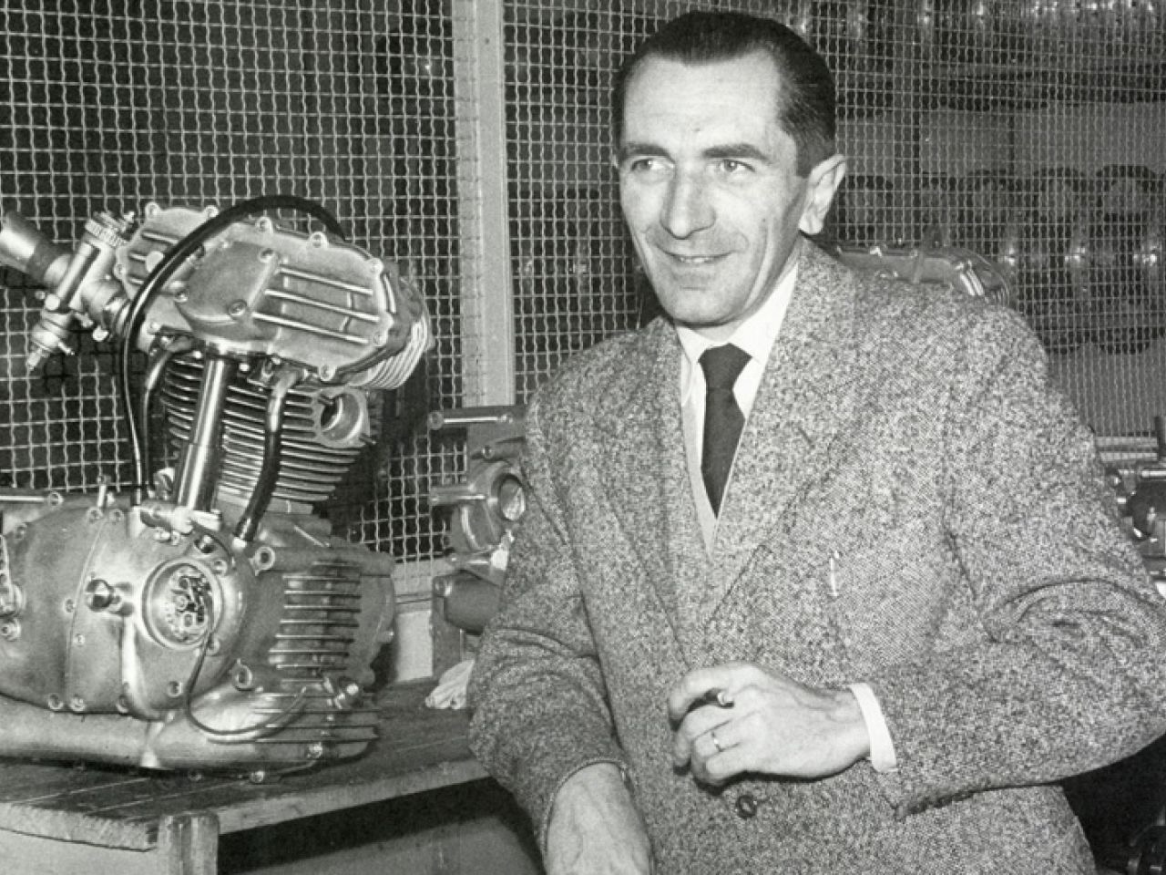 Fabio Taglioni, Chief Designer and Technical Director of Ducati between 1954 and 1989. A full-fledged driving force in himself, this hugely talented engineer, highly influential in the motorcycling history, spawned constant brainstorms throughout his professional trajectory, giving birth to a lot of iconic bikes and revolutionary single-cylinder and two-cylinder powerplants, such as his V-Twin 90º desmodromic engine, invented by him in 1971, still used in vast majority of Ducati bikes.