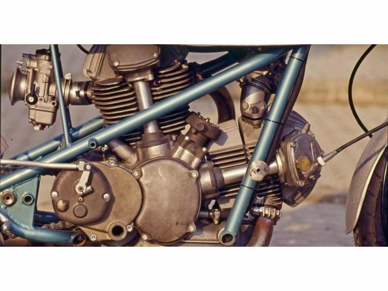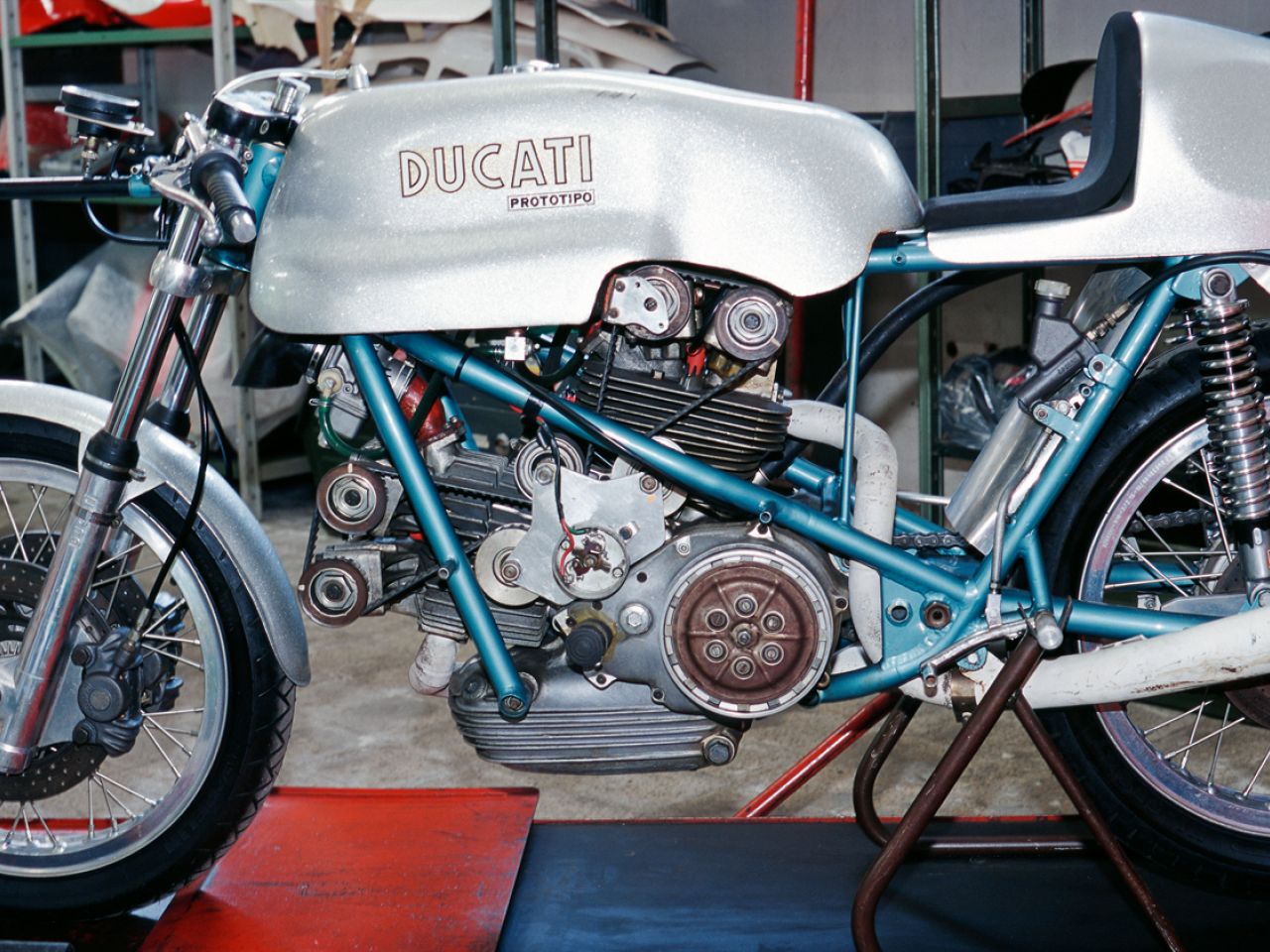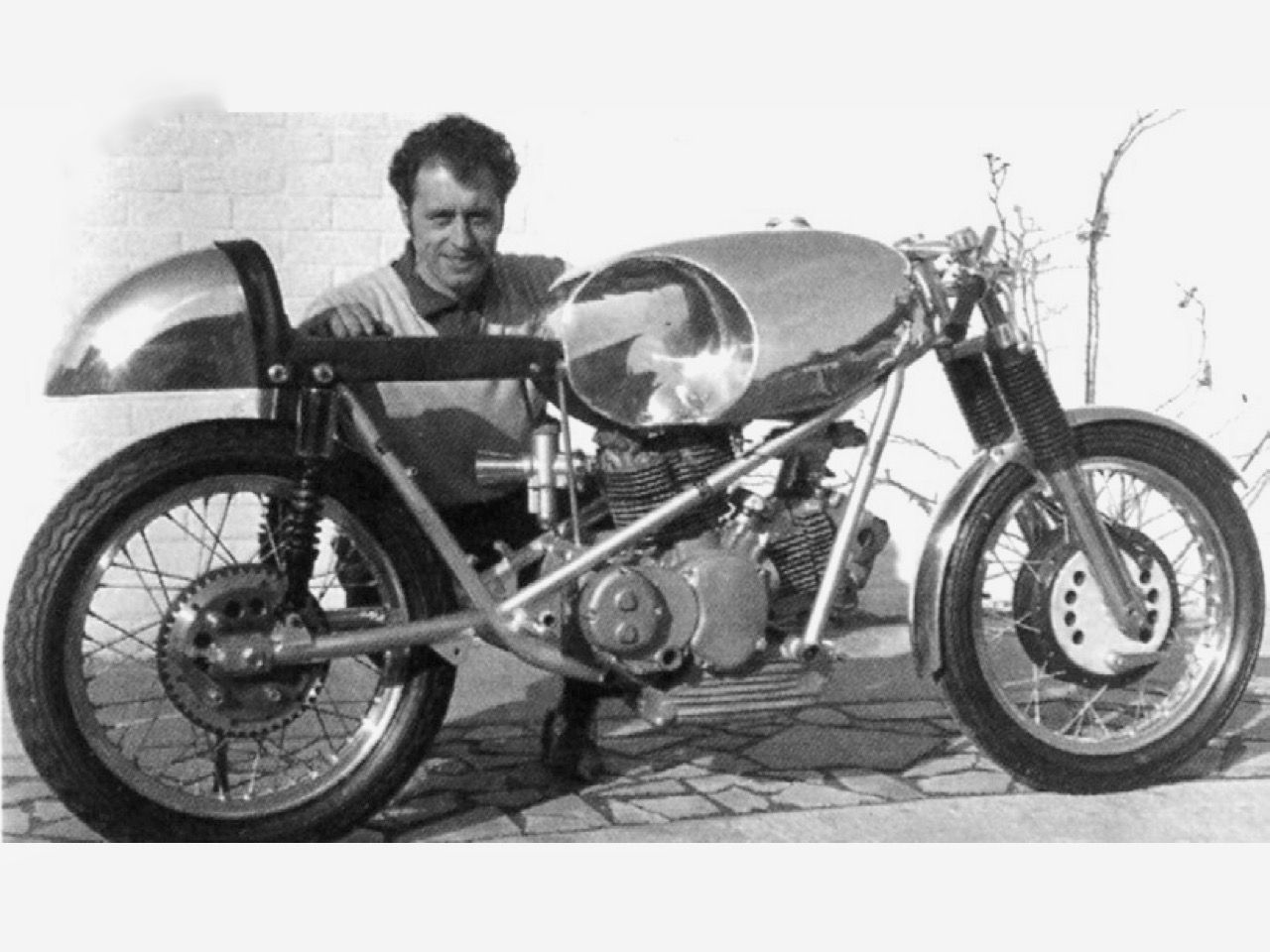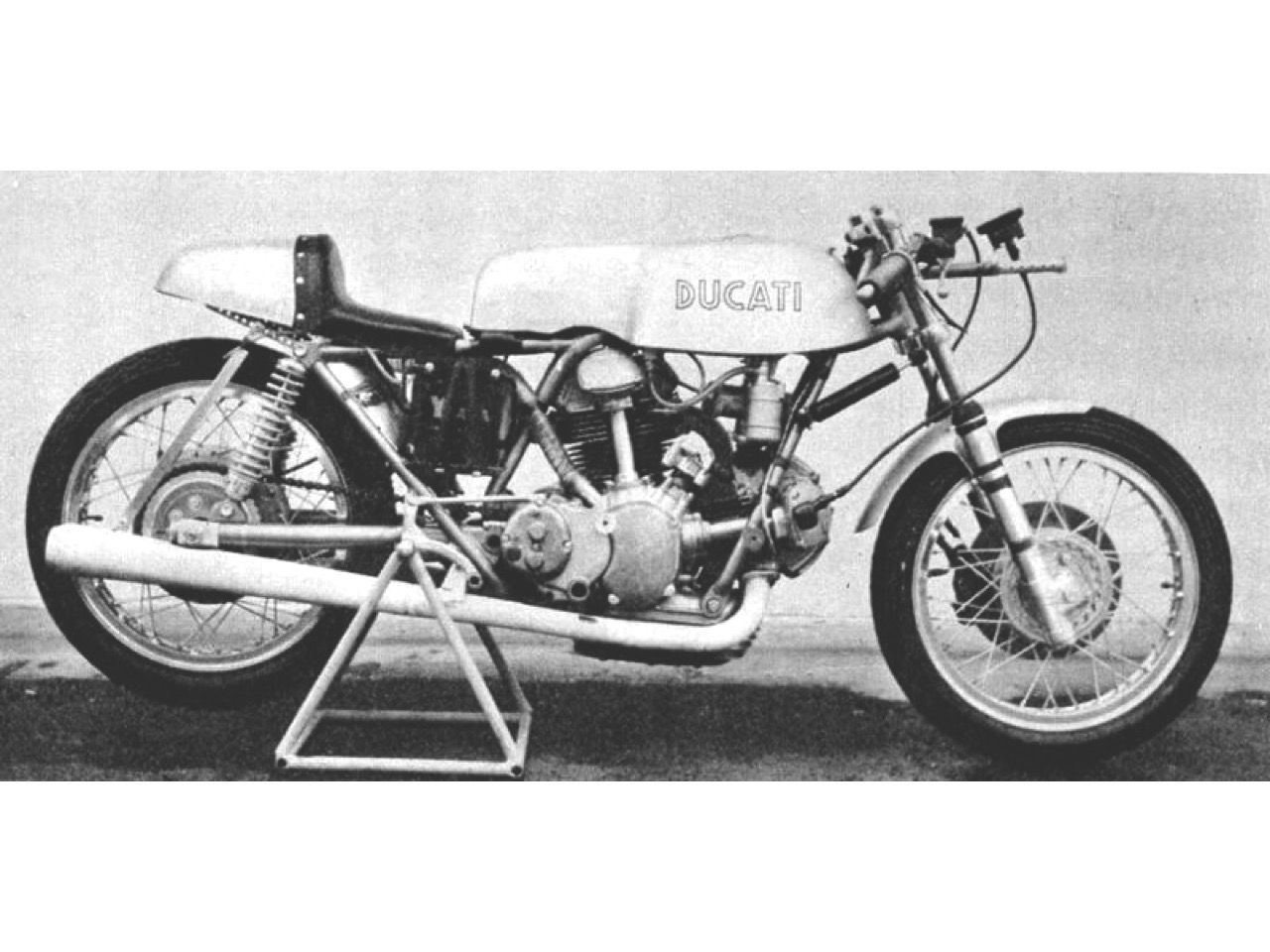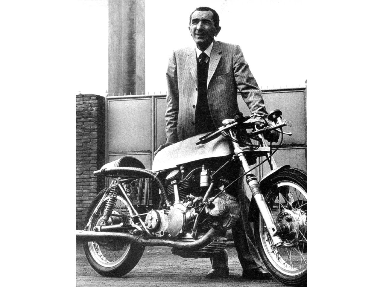 While in England, Spairani was introduced to known frame builder Colin Seeley by the UK Ducati importer Vic Camp. Seeley was very successful with his version of the Matchless G50 and had developed a very innovative approach to frame building. Spairani was impressed and commissioned Seeley to build a prototype frame for the 500 Grand Prix racer around a set of empty engine cases, cylinders and heads.
