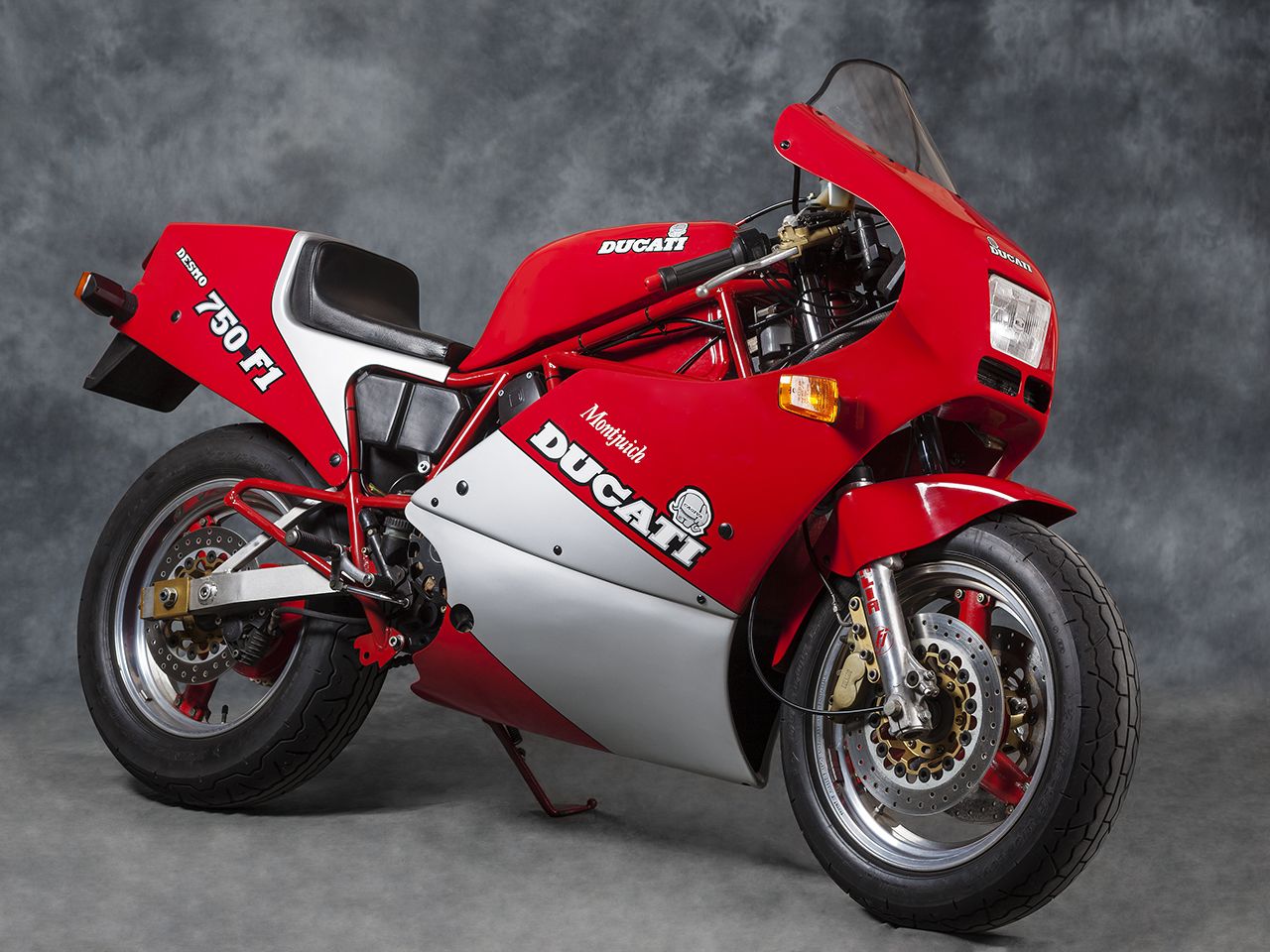 The Montjuich (named after the Montjuich Park racing circuit in Barcelona, Spain) was the first to arrive and was uncompromising in every way. The engine was taken from the 750 F1 but with many changes: the inlet ports were larger, the cams hotter, the carburettors larger and the gearbox altered (as for the ‘standard’ 1986 750 F1 model). The dry clutch had an aluminium inner drum and ignition was Kokusan rather than Bosch. The Montjuich was fitted with an extremely loud Verlicchi 2-into-1 exhaust. It received an aluminium swing arm and Marvic/Akront wheels which had a polished aluminium outer ring (Akront) and a cast magnesium three-spoke centre (Marvic). Brakes were Brembo ‘Gold Series’ four-piston callipers with full floating discs. No indicator lights were fitted. Only 200 were ever produced.