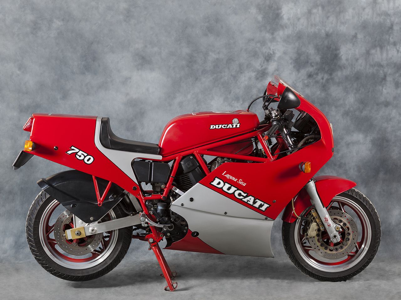 The final special series 750 F1 was the Santamonica (named after the Autodromo Santamonica at Misano, Italy). It was basically a Laguna Seca with only minor changes: there was a dual seat fitted with removable cover and the Montjuich Marvic/Akront wheels were back. The Santamonica came with a new white and red colour scheme. A total of 204 Santamonica’s were ever produced.