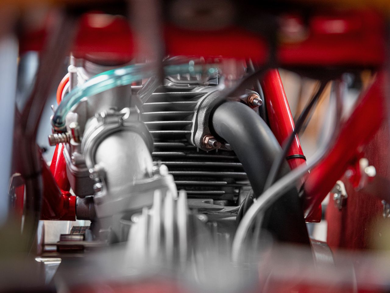 A pair of performance camshafts were sourced together with adjustable belt pulleys to get the valve timing perfect. A set of Dell’Orto PHM40 carburettors were machined to take the short bellmouth and the inlet manifolds had to be specifically made to get the carburettors tucked behind the frame tubes. With the engine finished and parts back from painting and other surface treatment, the final build took place over the course of 2022. Weighing in at just 134kg (including fluids), it became apparent that we chose the right path for this build.