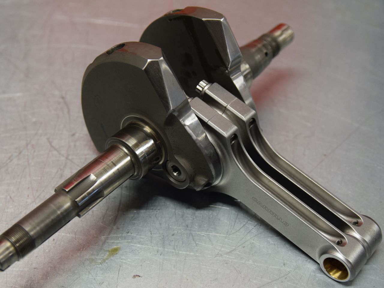 Lightened and balanced crankshaft with Carrillo con-rods.