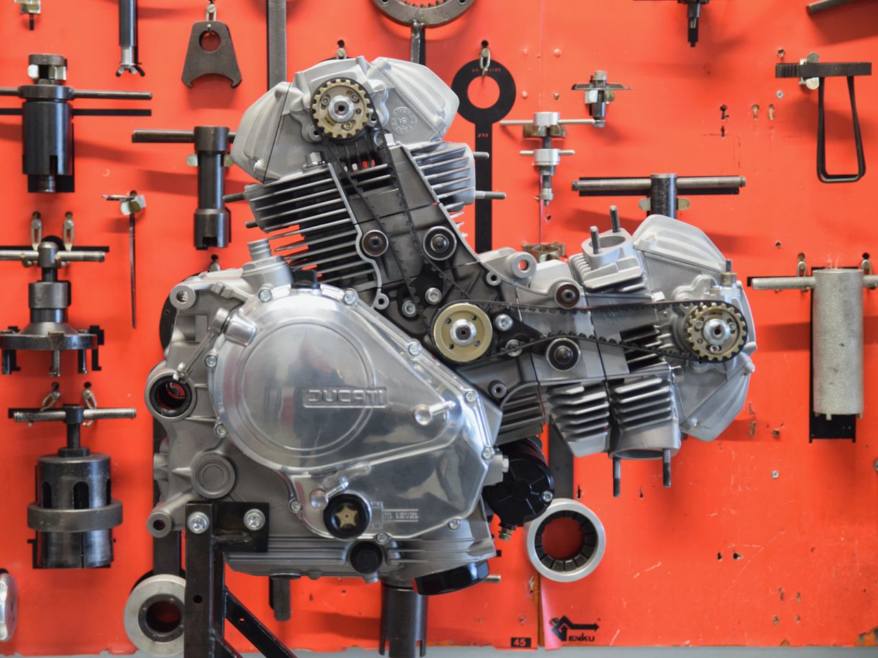 An early 500 SL Pantah engine after rebuild on our workbench.
