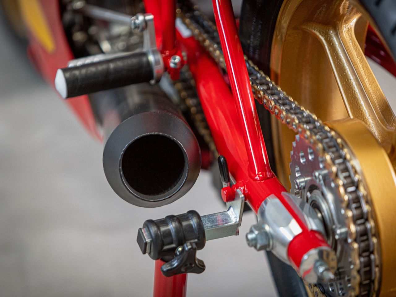 Many hours were spent on eBay and with contacting many people in our network to find the needed parts. We were able to find an original Marzocchi M1R front fork, a set of Brembo P4 quick-release callipers and an original 3.50×16” Campagnolo front wheel. We soon found out that the new TT2 frames that are currently available are not the original design and made to take the slightly larger 900cc Desmodue engine. We however wanted to stay closer to original and eventually were able to find an older Pierobon-made frame to the correct specifications.
