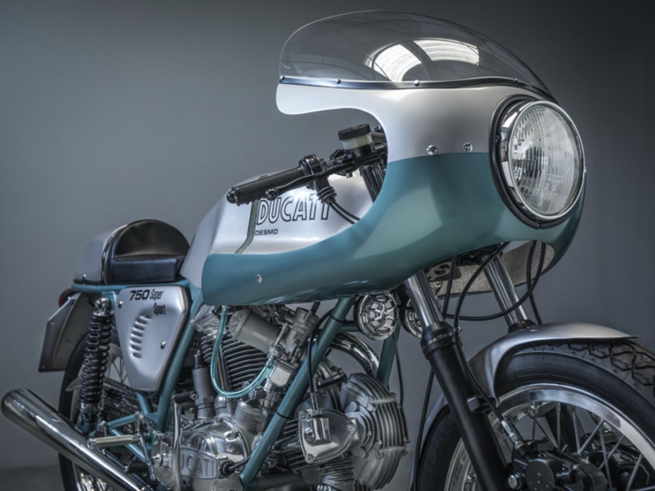 The 1974 Ducati 750 Super Sport was the first bike to get fibreglass parts that were painted. Many of the parts for this model were made with the same colour yellow gel coat as was used for the 1972-74 750 Sport models but painted silver and green, still without a clear coat. This process was also used on the 1975 Super Sports, after which a clear coat was also applied to these painted fibreglass parts.