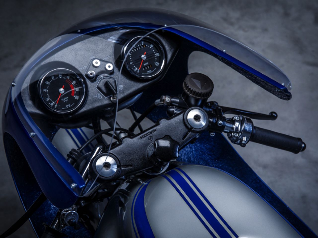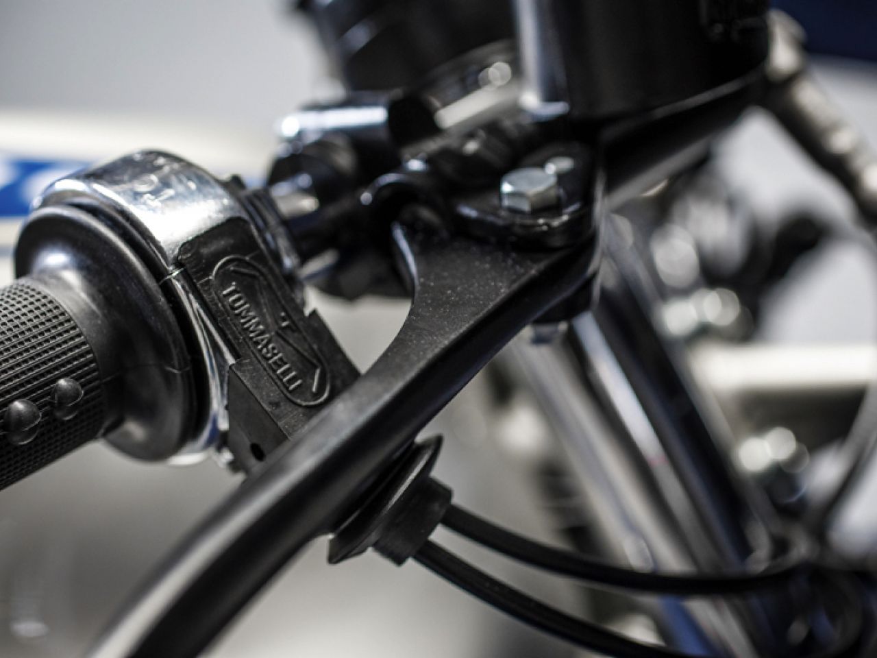 We invested a lot of time to replicate the correct finish of the paint work on this bike. Where the basic paint is silver on the frame and the bodywork parts, the fairing is painted in metallic blue that has a slightly darker shade to it than the blue used on the decals for the tank, seat and front mudguard. After many samples, we finally got it right and had the fairing painted as well.