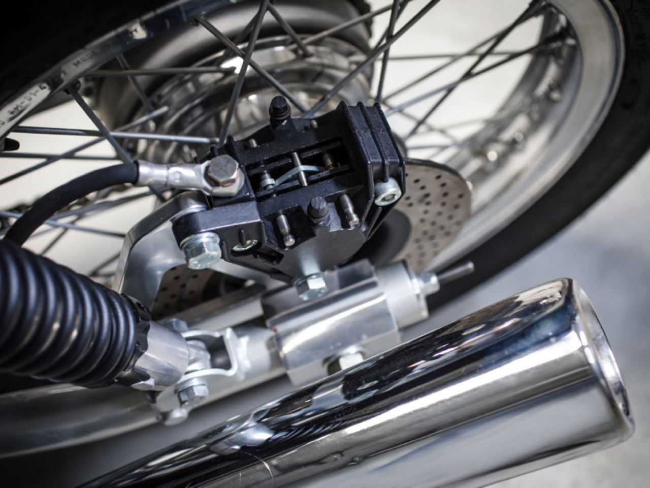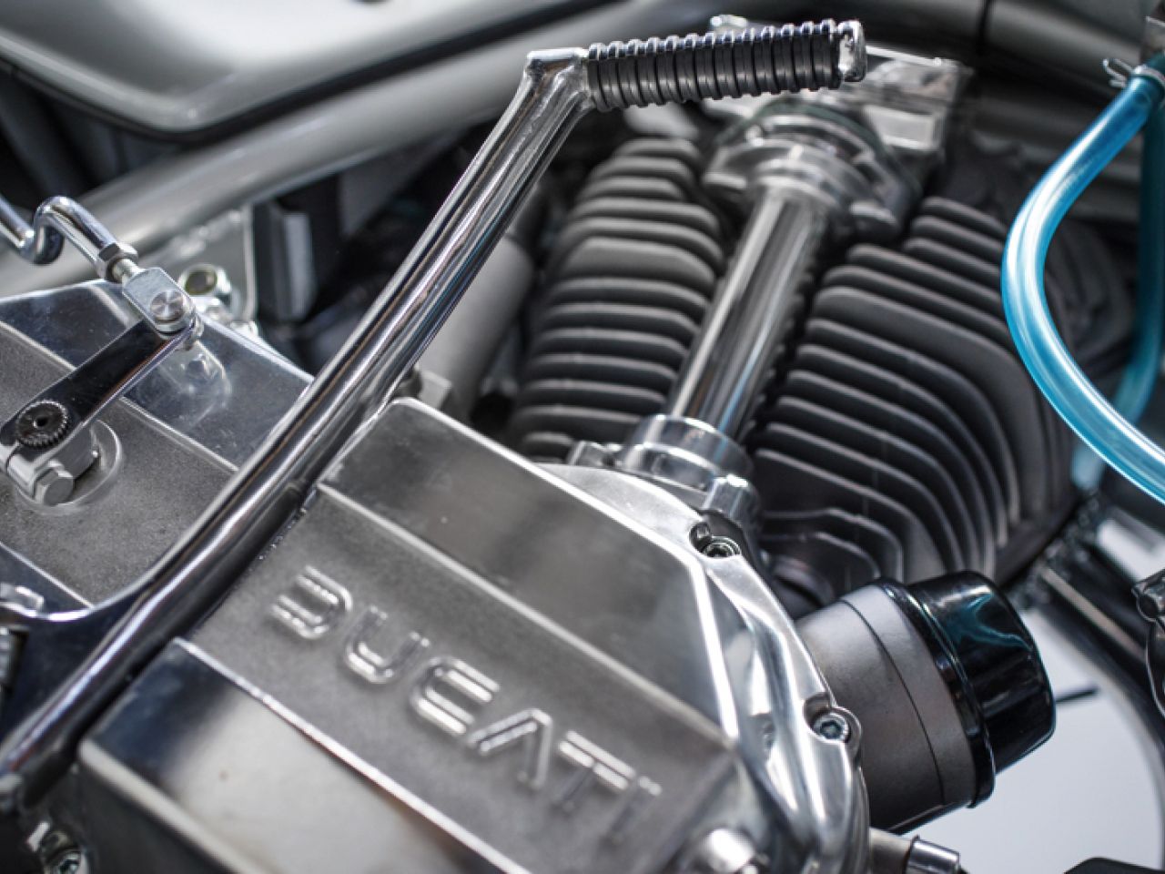 The new 860 engine was taken directly into the design but with the same cylinder head design with desmodromic valve actuation as was used, again, on the 1974 Super Sport. The crankshaft was fitted with newly designed con-rods and new Borgo pistons brought the compression ratio slightly higher than on the standard 860.